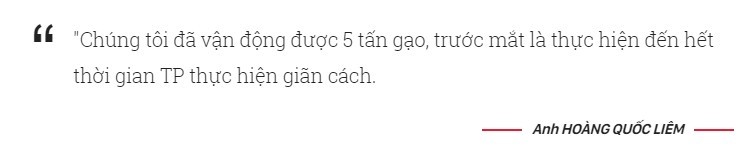 Anh Hoàng Quốc Liêm, bí thư Quận đoàn Tân Phú, cho biết đội hình thanh niên tình nguyện bốc xếp gạo, đo thân nhiệt và sắp xếp giữ khoảng cách an toàn.
